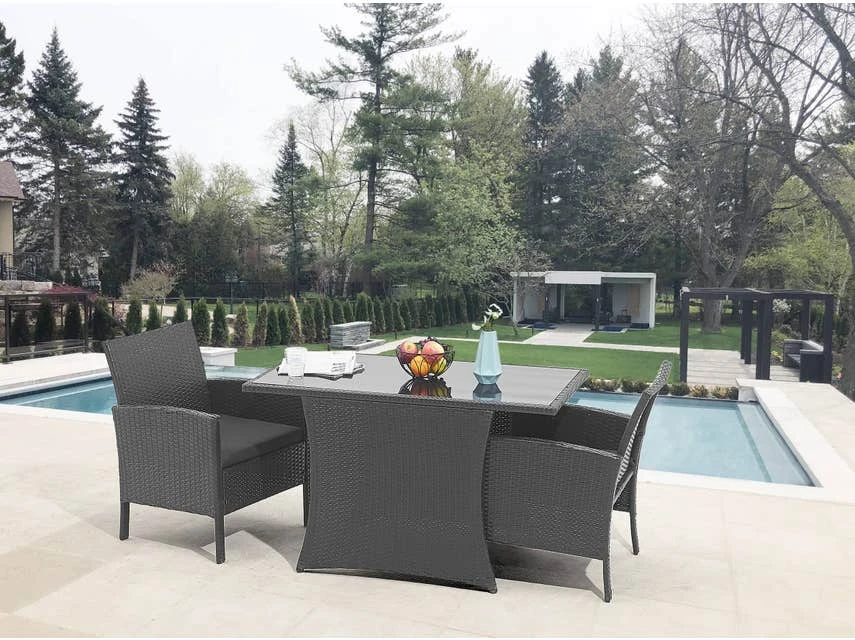 Für dieses elegante Set ist selbst auf kleinen Balkonen genug Platz. Das Balkonmöbel-Set besteht aus zwei Stühlen (je 59 x 81 x 64 cm), passenden Sitzauflagen und einem Tisch (120 x 71 x 66 cm). Dank einer pflegeleichten, wasserabweisenden PE-Rattan Ummantelung ist dieses Set ein langlebiger Begleiter für viele Jahre.