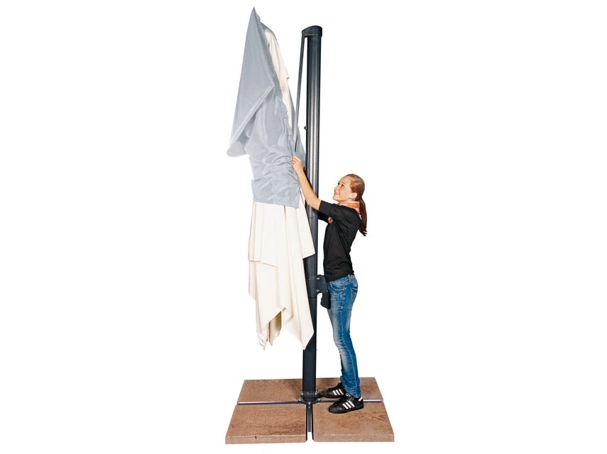Diese Schutzhülle für Pendelschirme bis Durchmesser 300 cm oder 300×300 cm ist inkl. Reißverschluss und Stab.