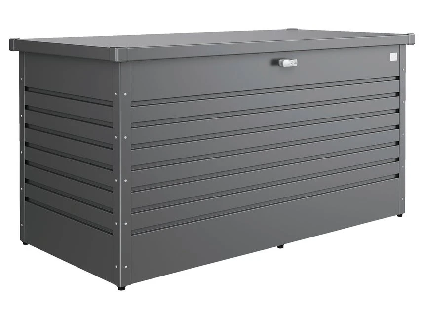Die Freizeitbox aus verzinktem Stahlblech ist der ideale Aufbewahrungsort für Sitzkissen, Gartenwerkzeuge und das Gartenspielzeug Ihrer Kinder. Hier ist alles bestens vor Wind & Wetter geschützt.