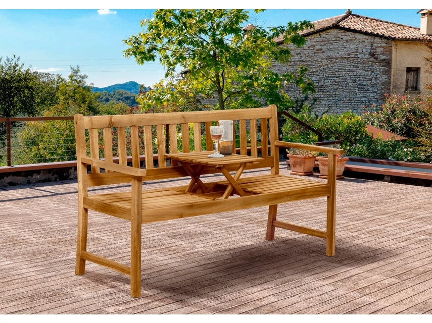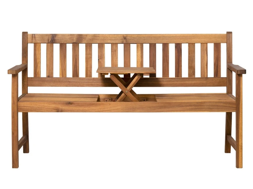 Die Gartenbank aus Akazienholz mit Oberfläche geölt ist ein zeitloser Klassiker für Ihren Garten. In der Mitte befindet sich eine praktische, aufklappbar Ablagefläche für kühle Getränke, kleine Snacks und was Sie sonst noch für erholsame Stunden im Garten benötigen.