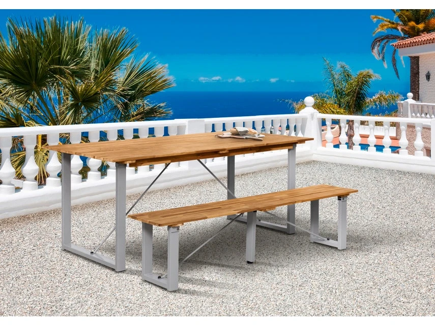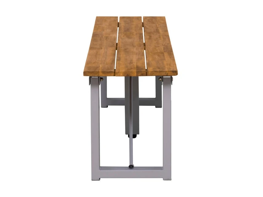 Mit dieser robusten Gartenbank zieht Gemütlichkeit in Ihren Outdoorbereich ein. Die Gartenbank ist mit klappbaren Beinen aus Metall pulverbeschichtet gefertigt. Die Holzöberfläche ist sorgsam geölt. Wird die Bank einmal nicht benötigt, so kann diese zusammengeklappt platzsparend verstaut werden. Nehmen Sie Platz und genießen Sie einen traumhaften Sommertag im Freien.