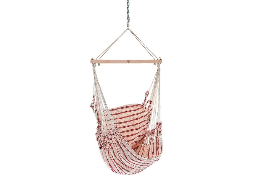 Der Hängesessel ist aus Baumwolle in bunt inkl. Drehwirbel, Karabiner und Kette.