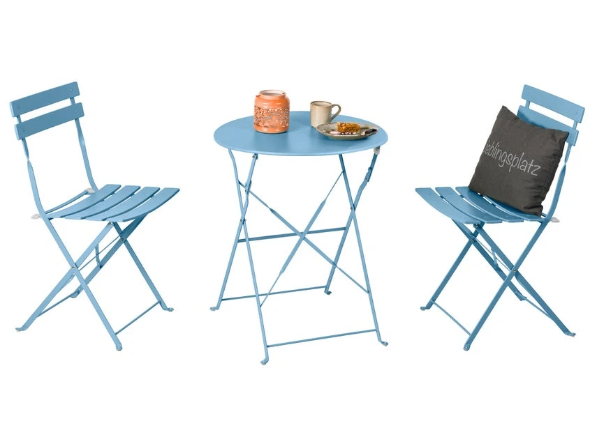 Klein aber fein lautet das Motto beim 3-teilige Balkonmöbel-Set Amalfi, welches in pastelligem Hellblau Akzente setzt und für einen freundlichen Farbtupfer in Ihrem Outdoorbereich sorgt. Tisch (60 x 70 cm, Tischunterkante Höhe 69 cm) und Sessel (41 x 79 x 49 cm, Sitzhöhe 43 cm) lassen sich zusammenklappen und können so optimal und platzsparend verstaut werden. Genießen Sie die tolle Atmosphäre auf Ihrem Balkon bei einem gutem Buch oder einer Tasse Kaffee und lassen Sie die Seele baumeln.