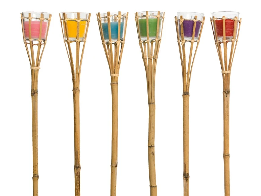 Mit heimeligen Lichtschein, leuchtenden Farben und toller Optik macht die dekorative Bambusfackel von Jardini in Ihrer Outdoor-Oase viel her. Sie ist mit einer Citronella-Wachskerze im Glas bestückt, die nicht nur hübsch flackert, sondern auch lästige Insekten vertreibt. Die Fackel gibt es wahlweise in Gelb, Rosa, Rot, Blau, Grün und Violett in den Leiner-Filialen.