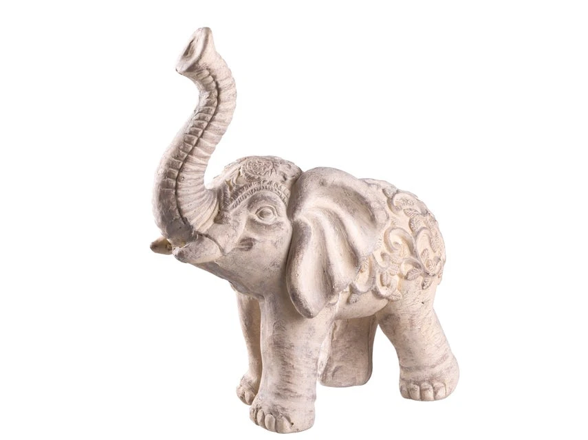Elefanten gelten als Glücksbringer – und Glück kann man bekanntermaßen nie genug haben. Doch auch sonst ist das imposante Rüsseltier ein reizvolles Dekoobjekt, wie die 51 cm hohe Elefantenskulptur beweist. Der cremefarbene Kunststein in Antik-Optik macht sich toll im Grünen und die indisch inspirierten Gravurmuster sorgen für etwas exotisches Dschungel-Feeling.