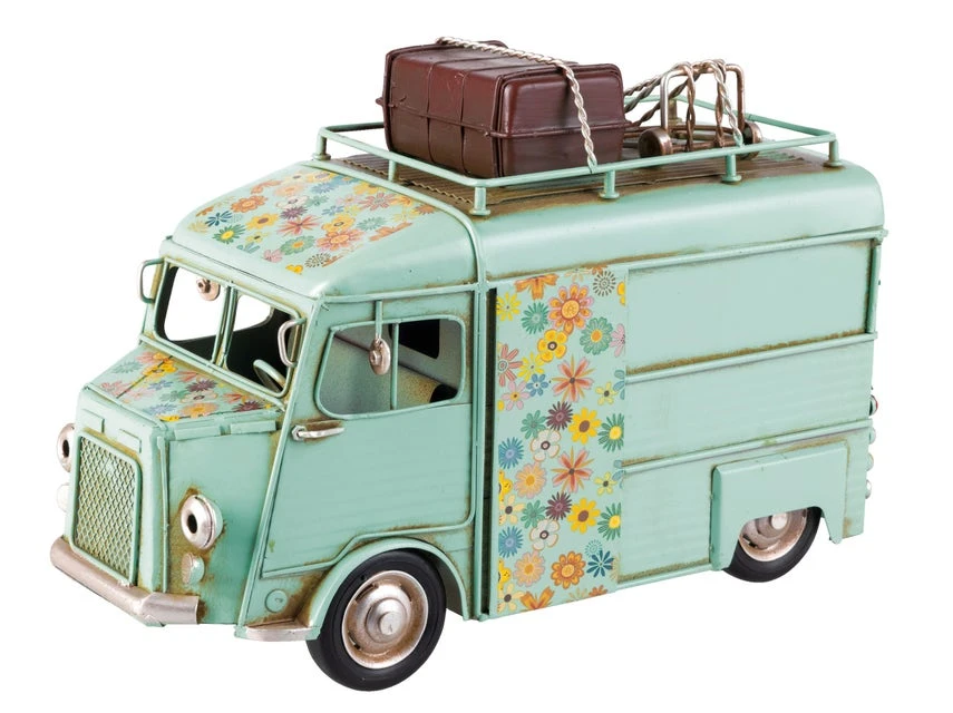 Das ideale Mittel gegen Fernweh ist dieser witzige Reisebus aus farbenfrohem Metall. Am liebevoll gestalteten Retro-Look fallen originelle Details auf, etwa eine Flower-Power-Bemalung wie aus der Hippie-Ära und ein alter Koffer auf dem Gepäckträger. Globetrotter reisten mit den Originalen einst um die Welt, als Dekostück bringt es Urlaubs-Feeling und Spaß in den Outdoorbereich. Erhältlich ist es in Hellgrün oder Orange in den Leiner-Filialen.