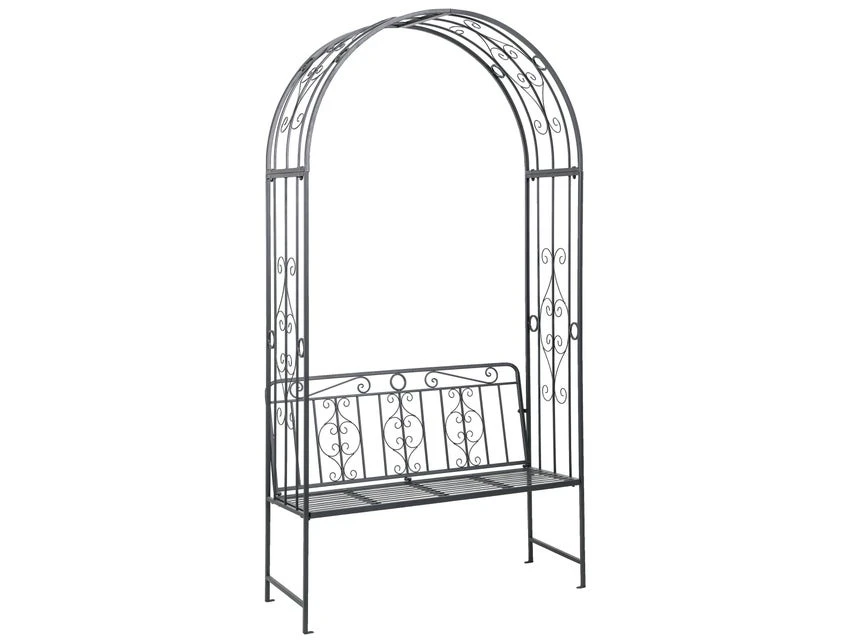 Für alle die es im Garten romantisch lieben ist die Gartenbank Rosalie perfekt. Das Sitzmöbel für den Outdoorbereich ist kunstvoll aus Schmiedeeisen gefertigt und der angebrachte Rosenbogen sorgt für einen hübschen Blickfang.