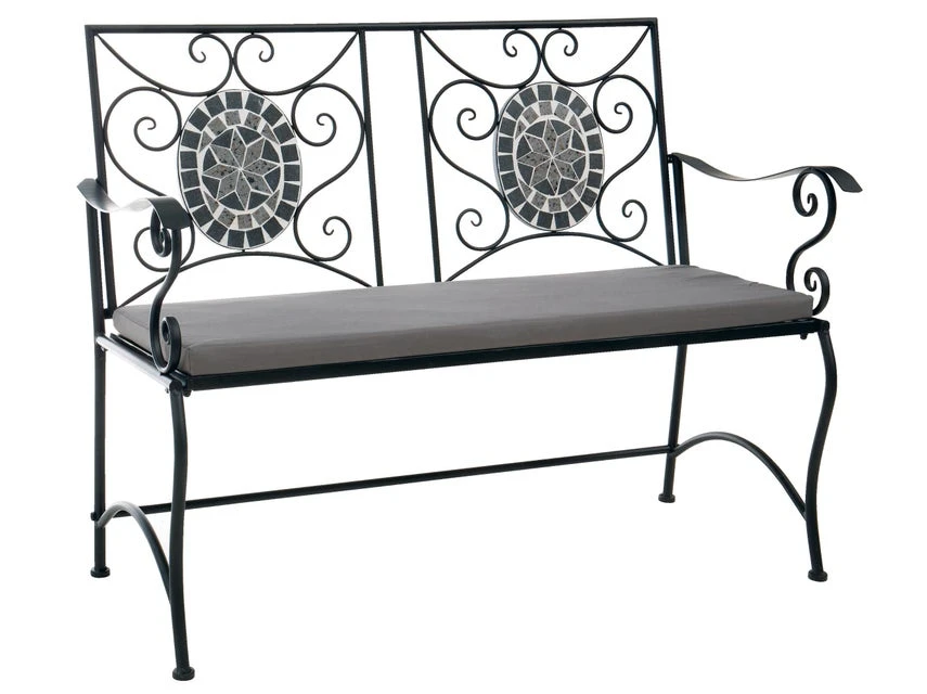 Für alle die es im Garten romantisch lieben ist die Gartenbank Rosi perfekt. Das Sitzmöbel für den Outdoorbereich ist kunstvoll aus Schmiedeeisen gefertigt und an der Rückenlehne eingesetzte Mosaikfliesen sorgen für einen hübschen Blickfang. Für ein Plus an Komfort sorgt die mitgelieferte Sitzauflage.