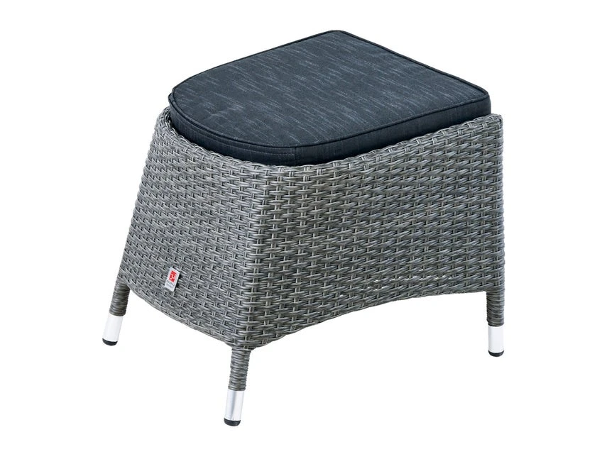 Rasch wird der angenehme Gartenhocker Barcelona ein Lieblingsstück für jeden! Das Aluminiumgestell dieses Hockers ist mit grauem Kunststoffgeflecht ummantelt und er ist zusätzlich mit einem praktischen Kissen mit den Maßen B 43 x H 5 x T 46 cm ausgestattet.