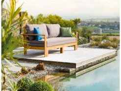 Das Gestell ist aus Aluminium in Schwarz pulverbeschichtet und der Bezug in Sunbrella Annthrazit. Ein Pluspunkt sind die inkludierten Kissen.