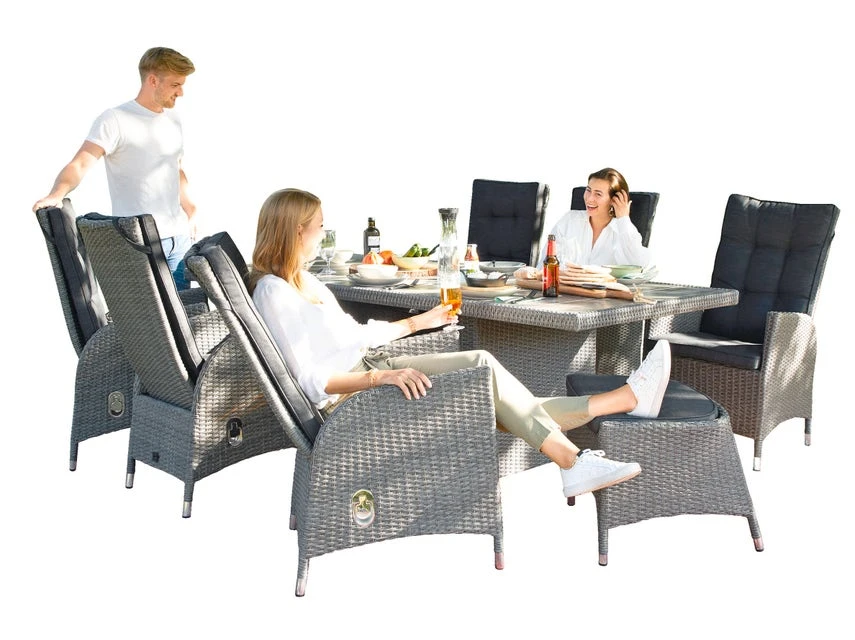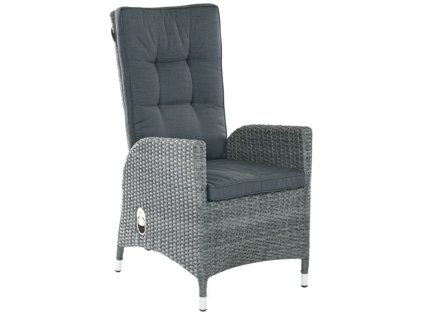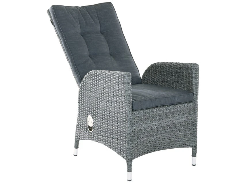 Rasch wird der bequeme Gartenfauteuil mit verstellbarer Rückenlehne ein Lieblingsstück für jeden! Das Aluminiumgestell dieses Sessels ist mit grauem Kunststoffgeflecht ummantelt und er ist zusätzlich mit einem praktischen Sitzkissen aus Polyester in der Farbe Grau ausgestattet.