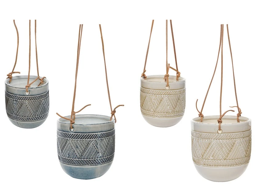 Zeitlose Klassiker, die wieder im Trend sind: Hängende Blumentöpfe sind charmante Hingucker, die Grünpflanzen, Kräuter und Blumen reizvoll präsentieren. Sie passen wunderbar zum mediterranem und Boho-Stil. Das zweiteilige Set aus feinem Steingut ziert ein Schraffurmuster, als Aufhängung dienen braune Schnüre. Es besteht aus zwei Töpfen in zwei Größen und ist in Beige oder Hellgrau in den Leiner-Filialen erhältlich.