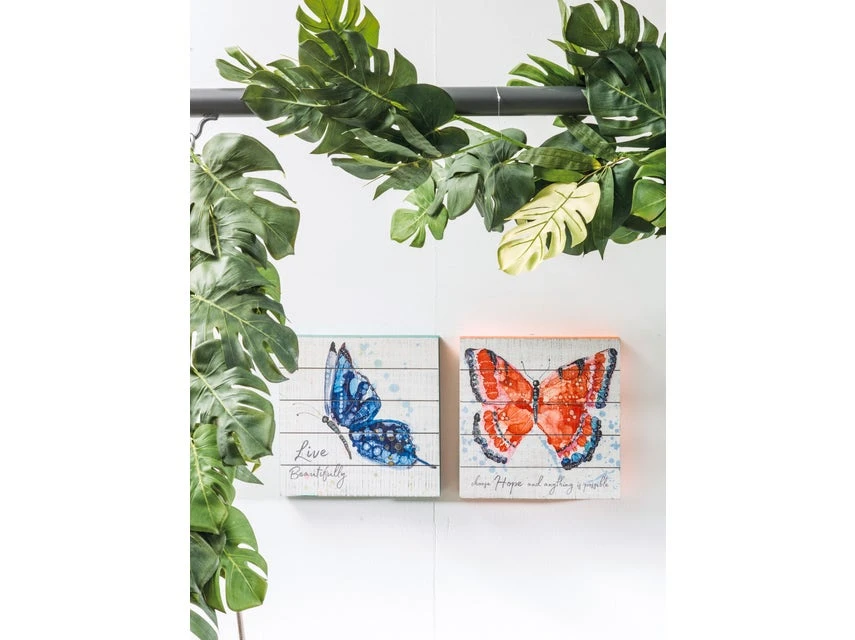Absolut sommerlich und ein hübscher Blickfang an der Wand ist dieses quadratische Holzbild von Jardini. Die fragilen Schmetterlinge zählen zu den schönsten Symbolen überhaupt, deshalb wirkt das blaue Motiv auch so luftig und unbeschwert. Gemeinsam mit dem optimistischen Motto und in Kombination mit Blumen und grünen Pflanzen schafft der Anblick gleich eine wunderbar positive Stimmung.