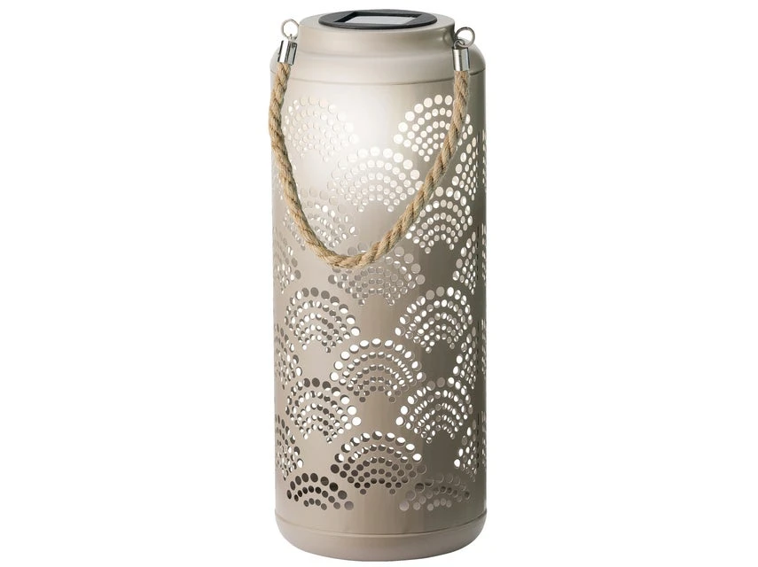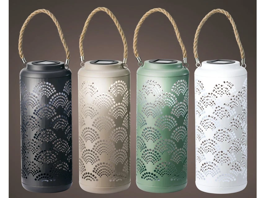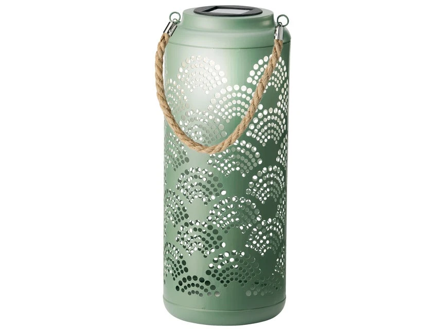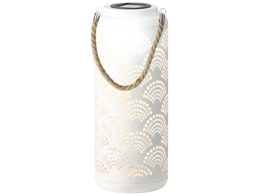 Fernöstliches Flair und eine gemütliche Wohlfühlstimmung bringt die farbige Solarlaterne von Jardini in Ihre Outdoor-Oase. Das kunstvolle durchbrochene Muster erzeugt anheimelnde Licht- und Schatteneffekte und die Farbtemperatur der LEDs lässt sich von ruhigem Warmweiß bis zum klaren Kaltweiß verstellen. Die Leuchte aus lackiertem Eisen besitzt einen tauschbaren Akku mit 8 Stunden Laufzeit. Hübsch und praktisch: die kurze Kordel als Tragegriff. Erhältlich ist sie in Weiß, Grün, Braun oder Anthrazit in den Leiner-Filialen.