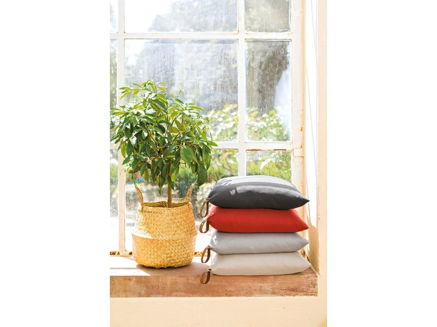 Die Kissenhülle Korfu ist nicht nur robust, sondern macht auch optisch eine sehr gute Figur auf Ihren Gartenmöbeln! Jede Kissenhülle hat in einer der Ecken eine kleine aber feine Lederschlaufe – ein echter Eyecatcher. Der Bezug ist absolut schmutz- und wasserabweisend.