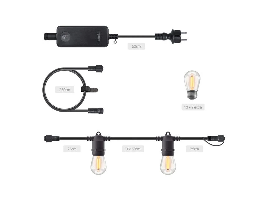Verzaubern Sie Ihre Grünoase oder Freiluft-Lounge mit wunderbarem Licht! Die perfekte Stimmung im Garten, auf Ballkon oder der Terrasse und bei Partys schafft diese smarte Outdoor-Lichterkette. Sie ist für eine individuelle Wohlfühlatmospähre technisch bestens ausgerüstet. So ist das fünf Meter lange Kabel von Smart String Lights mit zehn 12-Volt-Glühbirnen bestückt, deren warmweißes Licht angenehm scheint und sich auch dimmen lässt. Der größte Bonus der tollen Lichterkette ist die einfache Handhabung mit Sprachsteuerung: Mit Alexa, Google Assistant oder Siri können Sie sie bequem und schnell ein- und ausschalten. Oder Sie managen die Beleuchtung mithilfe der Hombli-App per Smartphone. Und natürlich ist die mit der Schutzart IP65 ausgestattete Lichterkette draußen vor Staub und Regenwasser sicher. Die Glühbirnen sind wechselbar, zwei Ersatzleuchtmittel sind im Lieferumfang enthalten.