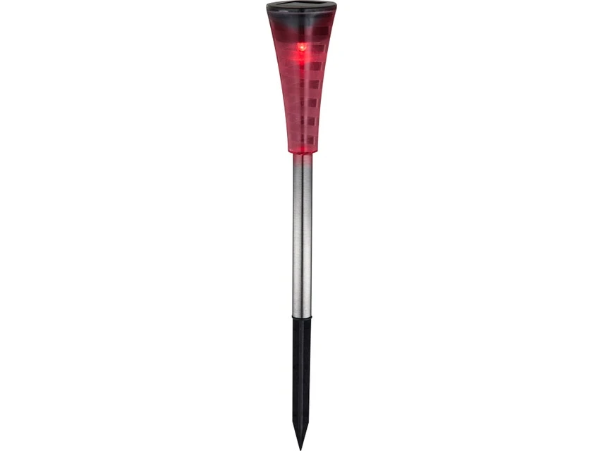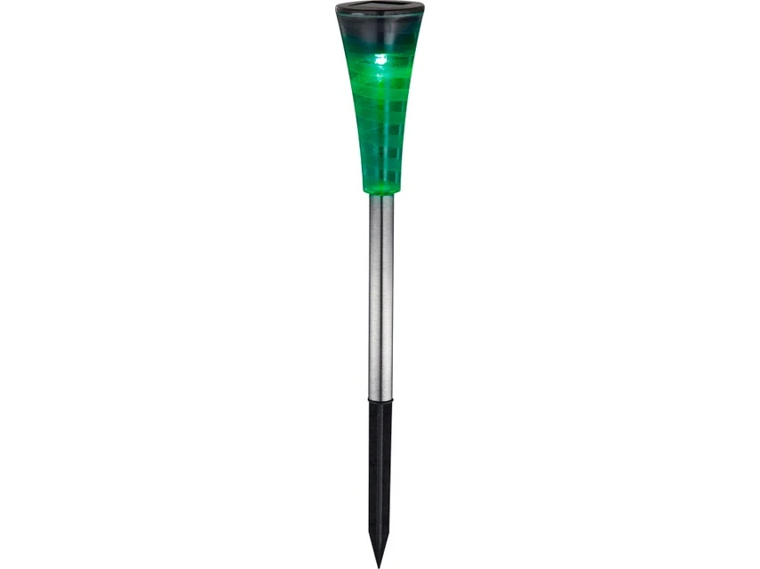 Bunte Abwechslung bringt das fünfteilige Solarleuchtenset von Globo in den Outdoorbereich. Dank eines RGB-Farbwechslers erstrahlen die LED-Solarspieße in farbenfrohem Licht, damit erhellen sie nicht nur ihre Umgebung und Gartenwege, sondern schaffen zugleich eine stimmungsvolle Atmosphäre. Da sie aus robustem Edelstahl und Kunststoff hergestellt und spritzwassergeschützt sind, sind sie für den Außeneinsatz perfekt gerüstet. Aufgeladen beträgt die Leuchtdauer etwa bis zu acht Stunden.