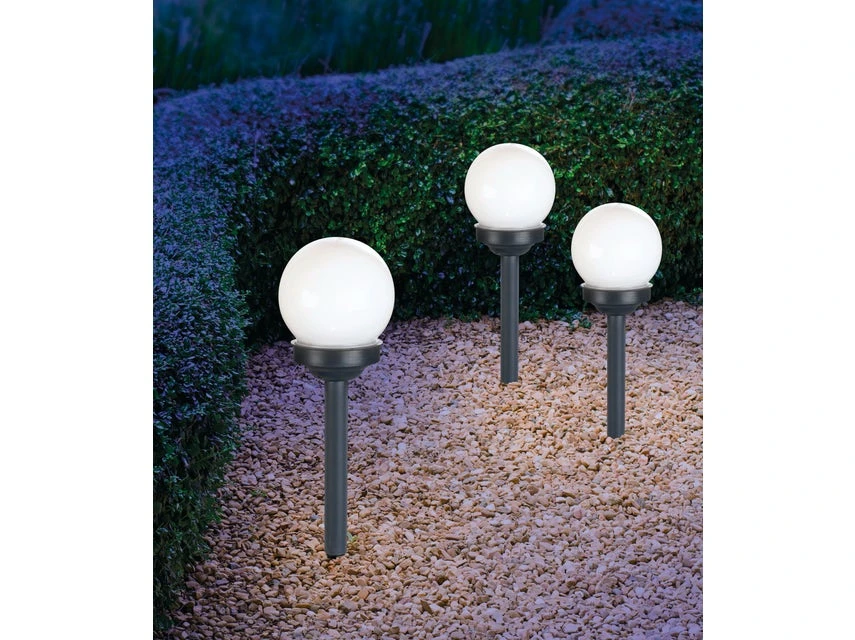 Lassen Sie eine Sonnenkugel in Ihrem Garten scheinen! Diese dekorative Solarleuchte im zeitlosen Design von Globo wird einfach in die Erde gesteckt und verströmt mit dem enthaltenen LED freundliches Licht. Sie besteht aus grauem und weißem Kunststoff, hat einen Durchmesser von circa 10 cm Durchmesser und besitzt einen praktischen Schiebeschalter. Im Rasen, am Rand von Beeten oder entlang von Wegen sorgt der etwa 35 cm hohe, spritzwassergeschützte Solarspieß für eine attraktive, atmosphärische Beleuchtung.