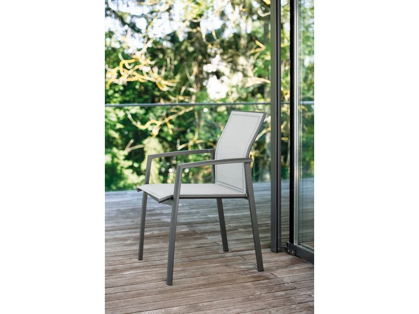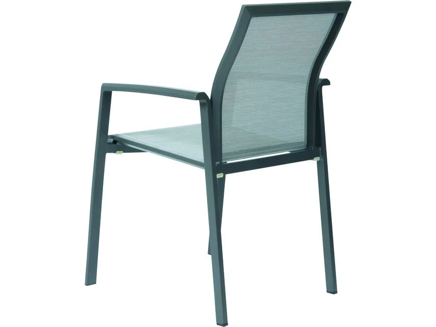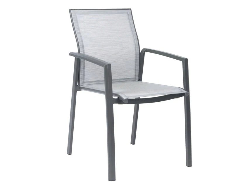 Mit dem Stapelstuhl erhalten Sie eine komfortable Sitzgelegenheit. Das Aluminiumgestell in anthrazit dieses Gartensessels ist mit einem Textilbezug in silber bespannt und mit angenehmen Armlehnen ausgestattet.