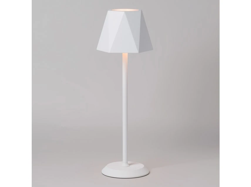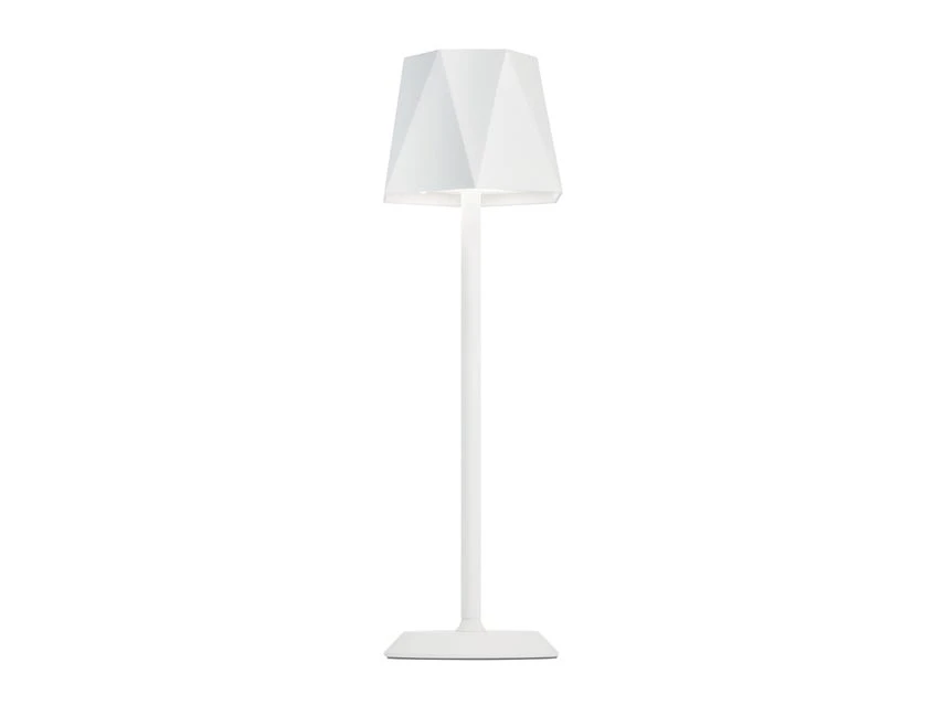 Elegant, raffiniert, zeitlos: Italienisches Design ist für sein Stilgefühl, hohe Qualität und Kreativität bekannt. All diese Markenzeichen prägen auch die kabellose Akku-Tischlampe Katy von Fabas Luce. Ein eckiger Lampenschirm im Origami-Look verleiht der klassischen Form einen exklusiven Touch. Die weiße Metall-Kunststoff-Leuchte ist in Innenräumen wie im Garten oder auf dem Balkon ein Highlight und fast überall platzierbar. Durch den niedrigen Schwerpunkt kann sie nicht kippen und ist mit der Schutzart IP54 vor Spritzwasser aus allen Richtungen sicher. Mit integriertem LED strahlt sie warmweißes Licht nach oben und unten ab, für eine angenehme Atmosphäre ist die Helligkeit mittels Touchdimmer stufenlos regulierbar. Praktisches Extra ist der Micro-USB-Ladeanschluss.