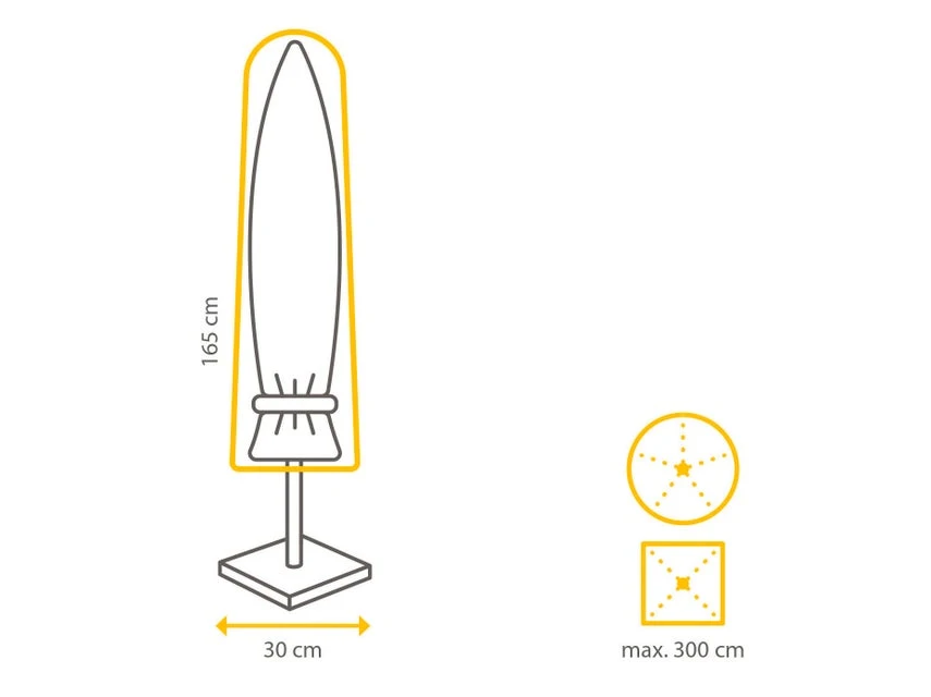 Diese Schutzhülle für Sonnenschirme B30/H165 cm bestehet aus hochwertigem Polypropylen Multifilament. Das Gewebe ist wasserdicht, UV-beständig und farbbeständig.